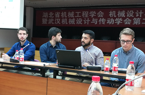 會(huì)議邀請(qǐng)4名江漢大學(xué)的德國(guó)研究生、武漢理工大學(xué)羅亞波教授、武漢工程大學(xué)陳漢新教授、南昌工程學(xué)院盧全國(guó)教授、武漢理工大學(xué)譚躍剛教授分別作了題為“Experimental and numerical determination of the aerodynamic quality of circular arc sheet blades with constant thickness and various edges”、 “智能—工業(yè)4.0的核心及難點(diǎn)”、“問診式高清晰度和高靈敏度的超聲無(wú)損檢測(cè)新一代技術(shù)和方法研究”、“磁致伸縮式慣性沖擊驅(qū)動(dòng)器的研究與開發(fā)”、“超聲激勵(lì)—光纖光柵分布檢測(cè)技術(shù)及其應(yīng)用”的專題學(xué)術(shù)報(bào)告。每個(gè)報(bào)告做完后,報(bào)告人都與參會(huì)代表進(jìn)行互動(dòng)交流,就相關(guān)問題進(jìn)行深入研究和探討。