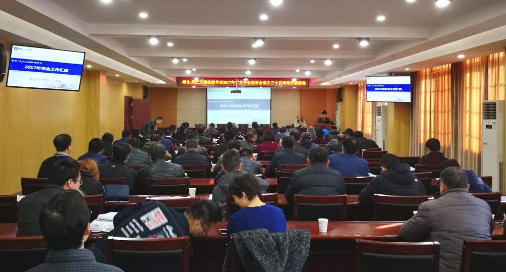 年會由無損檢測專業(yè)委員會秘書長宋小春主持。湖北工業(yè)大學(xué)副校長董仕節(jié)致歡迎辭,并介紹了湖北工業(yè)大學(xué)學(xué)科專業(yè)建設(shè)與發(fā)展情況,指出學(xué)校與學(xué)會、廣大會員單位在產(chǎn)學(xué)研合作上具有廣闊前景,期待我省無損檢測事業(yè)發(fā)展蒸蒸日上。湖北省機械工程學(xué)會副理事長兼秘書長朱永平回顧了對湖北?武漢無損檢測學(xué)會成立35年來取得的各項成績,對學(xué)會第十一屆理事會的工作給予了充分肯定,并希望學(xué)會全體同仁發(fā)揚傳統(tǒng)、再創(chuàng)佳績。湖北?武漢無損檢測學(xué)會理事長趙大興作了2017年學(xué)會工作報告及財務(wù)報告,從組織建設(shè)、學(xué)術(shù)交流、人員培訓(xùn)、自身建設(shè)、收支情況等方面對2017年工作進(jìn)行了總結(jié)。會上,還表彰了武漢中科創(chuàng)新技術(shù)股份有限公司、武漢鍋爐股份有限公司、武漢國檢檢測技術(shù)有限公司等三家優(yōu)秀會員單位和潘明達(dá)、孫港津、鮑紅、張淑芳、王璜等五位學(xué)會優(yōu)秀工作者”。