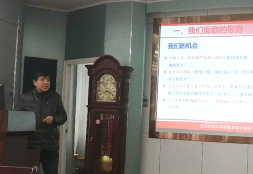 武漢科技大學陳奎生校長做了大會致辭,并指明專委會2018年的工作重點是如何讓產(chǎn)學研結合落地,同時也為校企合作共贏明確了方向。由于武漢大雪,天氣寒冷,路面全是積雪,全省9所設有工業(yè)工程的高校代表,以及益友會湖北分會代表都風雨無阻齊聚武漢科技大學,陳奎生副校長非常感謝與感動各位代表的參會。