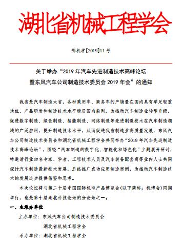 促進數(shù)字制造、綠色制造、智能制造、網(wǎng)絡制造等先進制造技術(shù)在汽車制造領(lǐng)域的廣泛應用,提升制造技術(shù)水平,從而促進我省制造業(yè)高質(zhì)量發(fā)展,東風汽車公司制造技術(shù)委員會和湖北省機械工程學會共同舉辦“2019 年汽車先進制造技術(shù)高峰論壇”,圍繞“汽車制造的數(shù)字化、智能化和綠色化”主題展開研討,特邀請行業(yè)知名專家、學者、工程技術(shù)人員及汽車裝備配套商等業(yè)內(nèi)人士共同探討汽車制造最新技術(shù)發(fā)展,總結(jié)推廣成功應用制造案例,為推動汽車制造技術(shù)的發(fā)展進步提供借鑒和思考。