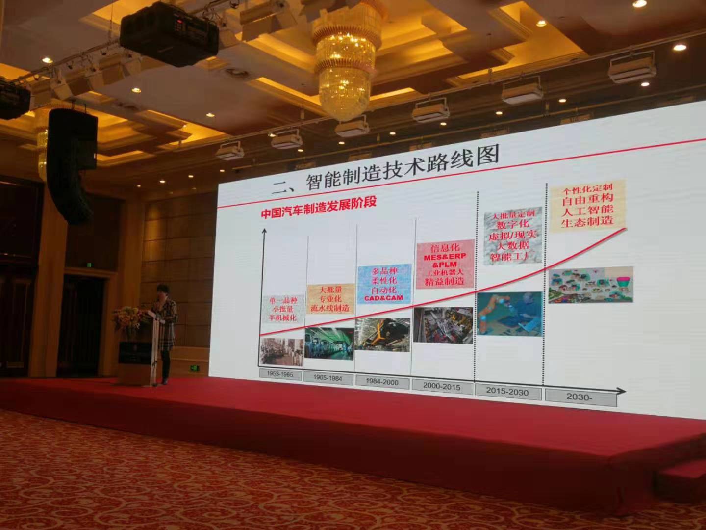 東風(fēng)汽車公司資深專家鄒恒琪作報告,題目是:汽車制造轉(zhuǎn)型升級之智能之路