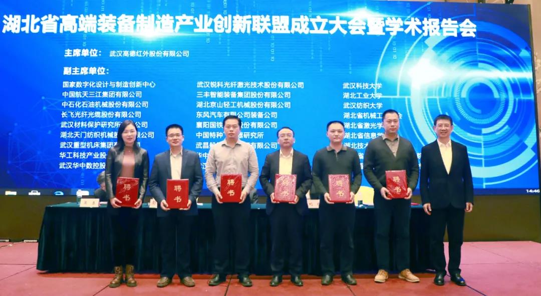 成立大會上,頒發(fā)了湖北省高端裝備制造產(chǎn)業(yè)創(chuàng)新聯(lián)盟主席單位、副主席單位牌匾和證書。頒發(fā)了秘書長和副秘書長證書。聯(lián)盟主席單位武漢高德紅外股份有限公司黃立董事長發(fā)表講話。
