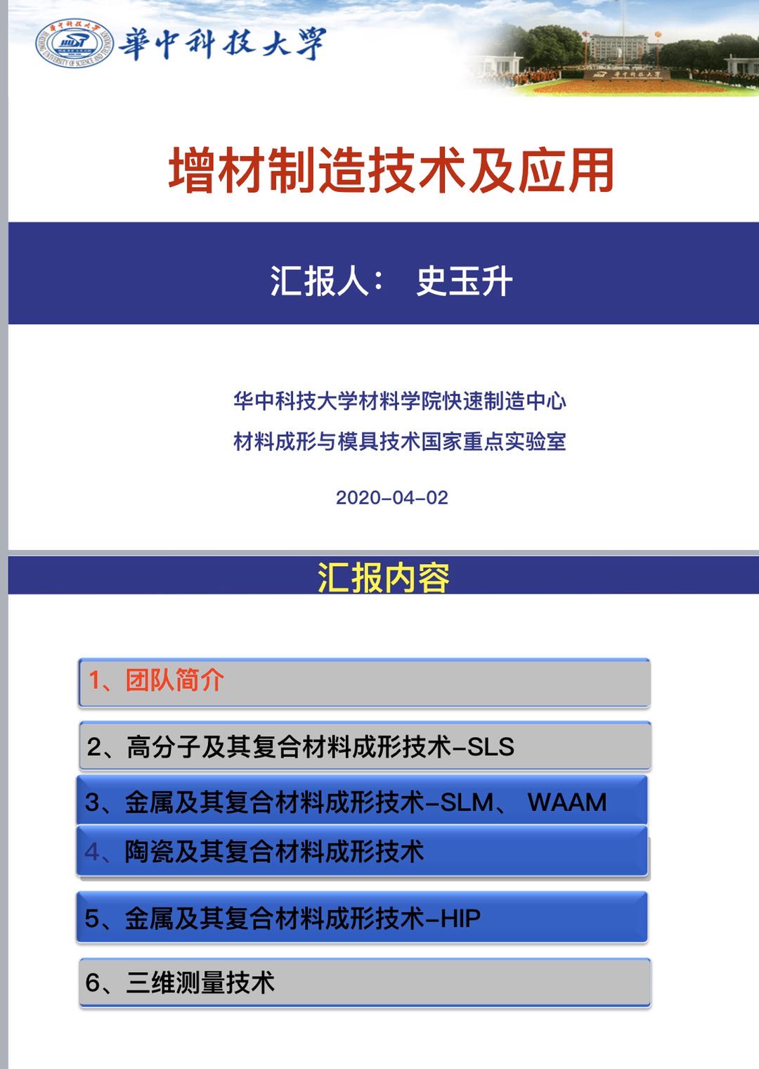 中石化石油工程機(jī)械有限公司謝永金總經(jīng)理致詞。在武漢新冠疫情取得初步勝利、公司復(fù)工復(fù)產(chǎn)關(guān)鍵階段,很高興與大家共同開展增材制造領(lǐng)域技術(shù)交流,感謝史玉升教授和張海鷗教授給企業(yè)科技人員帶來高端制造領(lǐng)域的前沿技術(shù)信息。