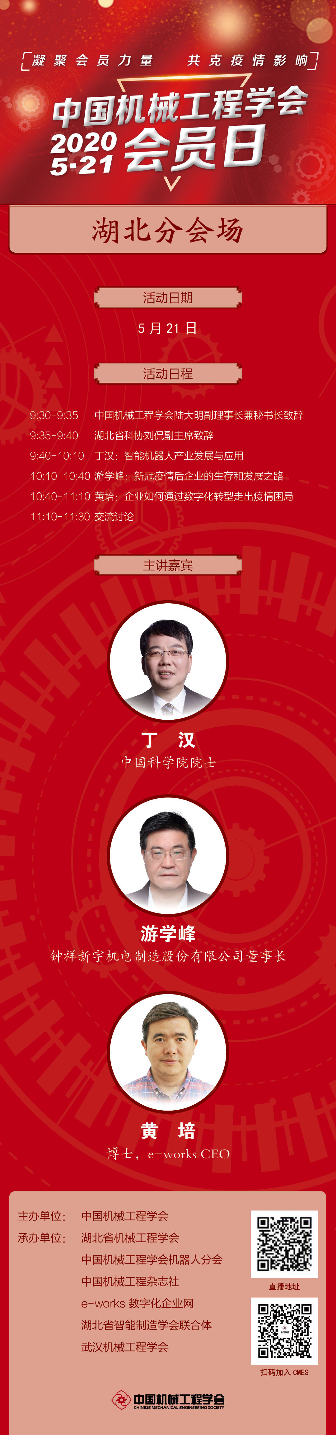 定于2020年5月21日(星期四)舉辦中國(guó)機(jī)械工程學(xué)會(huì)會(huì)員日活動(dòng)。本次活動(dòng)通過(guò)線上會(huì)議的方式開展專題學(xué)術(shù)交流,有關(guān)事項(xiàng)如下: