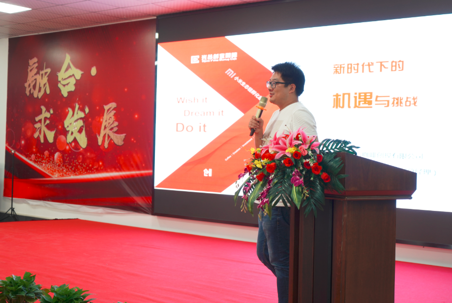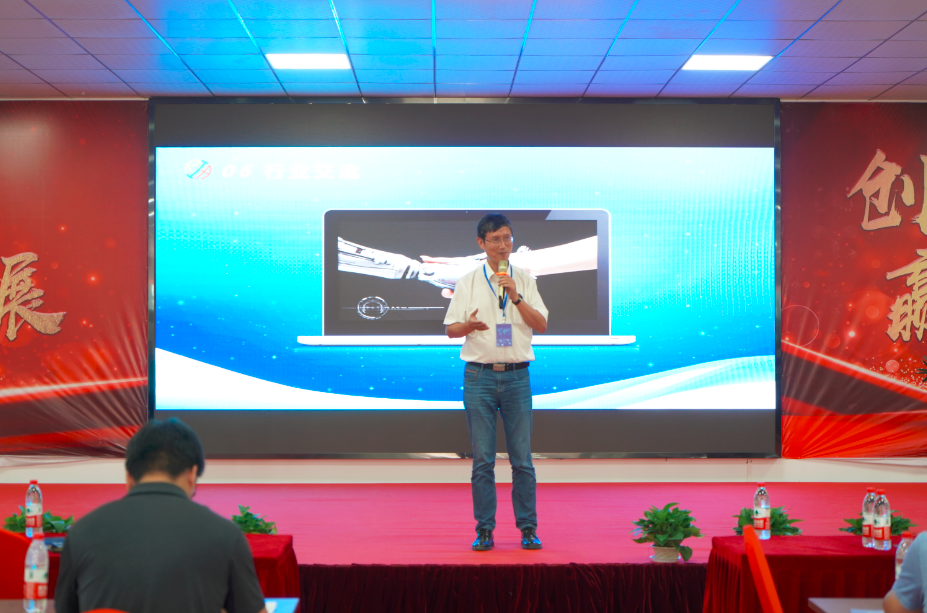 行業(yè)交流環(huán)節(jié),通過企業(yè)自愿介紹,旨在加強(qiáng)成員單位之間的了解與合作,聚焦機(jī)器人行業(yè),共同探討企業(yè)未來發(fā)展與智能轉(zhuǎn)型的新思路,武漢奮進(jìn)智能機(jī)器有限公司總經(jīng)理徐擊水向大家分享了他創(chuàng)業(yè)之路的艱辛和夢想,將會議氣氛推向高潮。
