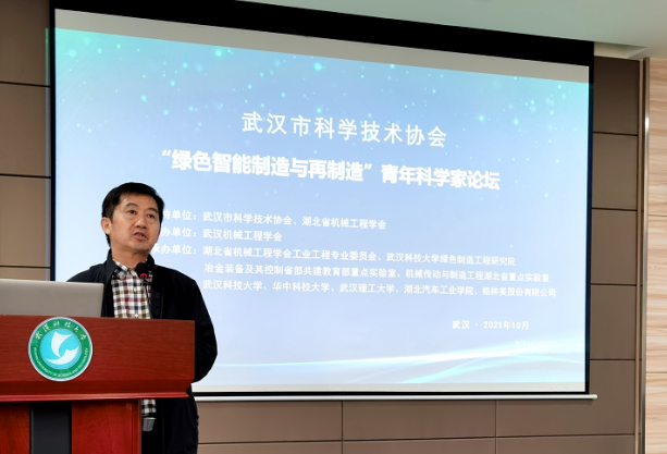 2021年10月30日,“綠色智能制造與再制造”青年科學(xué)家論壇在武漢科技大學(xué)成功舉行。本次論壇由武漢機械工程學(xué)會主辦,武漢科技大學(xué)承辦,華中科技大學(xué)、武漢理工大學(xué)、湖北汽車工業(yè)學(xué)院和格林美股份有限公司協(xié)辦。論壇得到了武漢市科學(xué)技術(shù)協(xié)會、湖北省機械工程學(xué)會、武漢科技大學(xué)綠色制造工程研究院、冶金裝備及其控制省部共建教育部重點實驗室、機械傳動與制造工程湖北省重點實驗室的大力支持。武漢市科協(xié)學(xué)會部部長杜循剛、科長秦冕,湖北省暨武漢機械工程學(xué)會副理事長朱永平、監(jiān)事長陳萬誠、副秘書長佘文芳、蔡喆,湖北省機械工程學(xué)會工業(yè)工程專業(yè)委員會理事長蔣國璋,武漢科技大學(xué)機械自動化學(xué)院院長曾良才、國際學(xué)院副院長江志剛,以及華中科技大學(xué)李新宇教授、湖北汽車工業(yè)學(xué)院胡明茂教授、武漢理工大學(xué)唐紅濤副教授、格林美武漢綠色產(chǎn)業(yè)創(chuàng)新研究院梯次利用研究中心主任別傳玉等領(lǐng)導(dǎo)和嘉賓出席。90余位來自高校、企業(yè)的專家、學(xué)者、研究生參會。