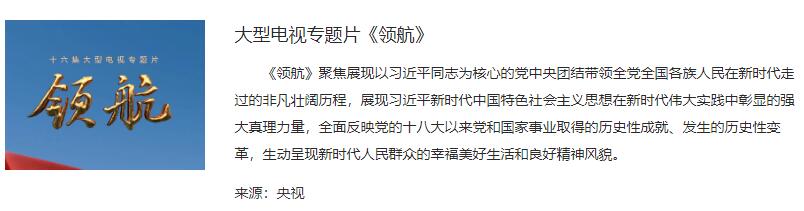 央視電視專題片《領(lǐng)航》(共16集,10月8-15日,每晚播出2集),要求全體黨員每晚認(rèn)真收看、學(xué)習(xí),并按央視播放進(jìn)度,在學(xué)會(huì)黨支部微信群每晚轉(zhuǎn)發(fā)2集的鏈接。
