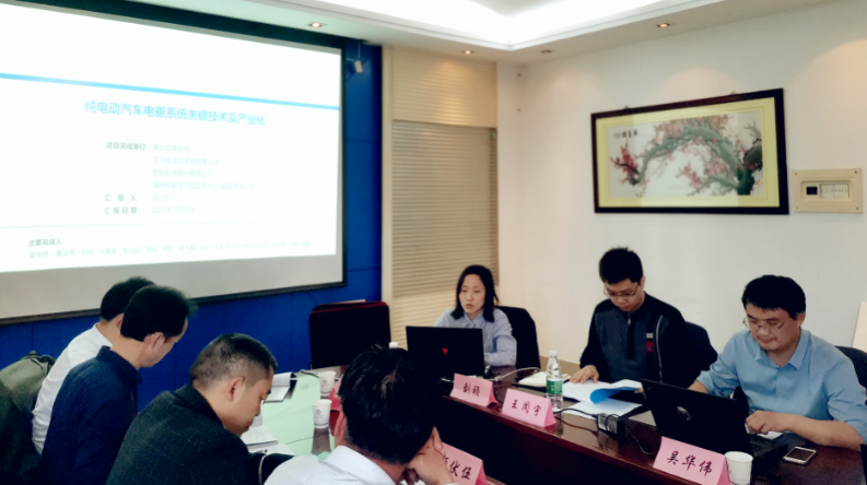 湖北文理學(xué)院汽車(chē)與交通工程學(xué)院副院長(zhǎng)吳華偉、東風(fēng)電驅(qū)動(dòng)系統(tǒng)有限公司設(shè)計(jì)主任工程師王聞?dòng)睢⒅切驴萍脊煞萦邢薰旧唐费邪l(fā)院電機(jī)開(kāi)發(fā)部總經(jīng)理馬霽旻等項(xiàng)目組負(fù)責(zé)人出席會(huì)議,湖北文理學(xué)院汽車(chē)與交通工程學(xué)院科研辦主任劉禎作項(xiàng)目匯報(bào)。