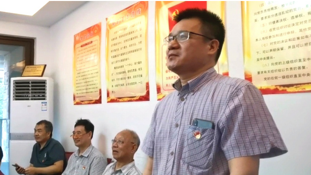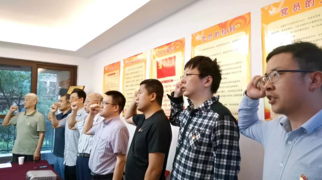 第二項(xiàng),由陳書(shū)記領(lǐng)讀,全體黨員重溫入黨誓詞。