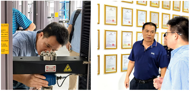 在安建平董事長和方先明總裁等人的全程陪同下,大家參觀了公司制造及研發(fā)部門。安建平董事長對公司重點項目及發(fā)展規(guī)劃作詳細介紹。作為產(chǎn)品研發(fā)、材料分析、質(zhì)量控制方面不可或缺的試驗儀器,萬測試驗機解決方案廣泛應(yīng)用于科研、教育、國防、商檢、制造和品控等領(lǐng)域,為全球的航空航天、國防軍工、科研院所、高等院校、工程質(zhì)檢、檢定認證、汽車船舶、軌道交通、橋梁土木、消費類電子、紡織、冶金、化工、醫(yī)療、電力、進出口檢驗等行業(yè)提供可靠的力學(xué)測試數(shù)據(jù)。