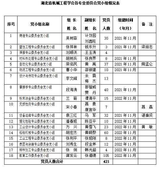 附:湖北省機械工程學(xué)會各專業(yè)委員會黨小組情況表