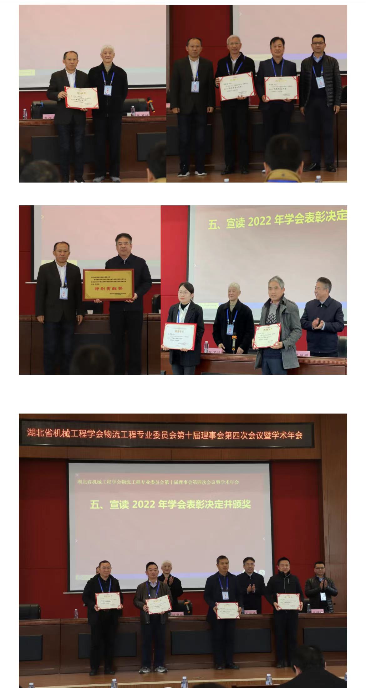 專委會秘書長曹小華宣讀了2022年湖北省機械工程學(xué)會表彰決定并舉行了頒獎儀式。學(xué)會授予物流工程專業(yè)委員會“先進專業(yè)委員會”榮譽稱號,授予湖北科峰智能傳動股份有限公司“特別貢獻獎”,授予武漢理工大學(xué)肖漢斌同志“學(xué)會特別貢獻獎”榮譽稱號,授予武漢理工大學(xué)邵新建同志和湖北三六重工有限公司周冬青同志“學(xué)會先進工作者”榮譽稱號,授予湖北佳恒科技股份有限公司金波同志,武漢港博港機技術(shù)有限公司佘黎明同志,湖北三六重工有限公司趙群同志,宜都華迅智能輸送股份有限公司宋紅玖同志,武漢科技大學(xué)王勇教授,武漢理工大學(xué)吳洪明副教授,湖北鄂南起重運輸機械有限公司李耀成同志,中國五環(huán)工程有限公司魏婷婷同志 “學(xué)會活動積極分子”榮譽稱號。
