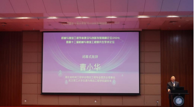 湖北省機械工程學會物流工程專業(yè)委員會理事長、武漢理工大學交通與物流學院副院長曹小華致閉幕詞。他感謝武漢科技大學管理學院師生和志愿者的精心籌劃和組織,感謝所有參會嘉賓帶來了精彩的成果分享,并鼓勵物流工程專業(yè)委員會理事和青年會員保持開拓創(chuàng)新的精神,勇于探索新的研究領域,挑戰(zhàn)新的研究問題,在學術研究上更上一層樓。