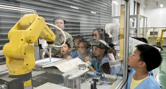 學(xué)生代表參觀智能制造產(chǎn)線實驗室,機器人寫字演示與互動,近距離感受智能制造的魅力