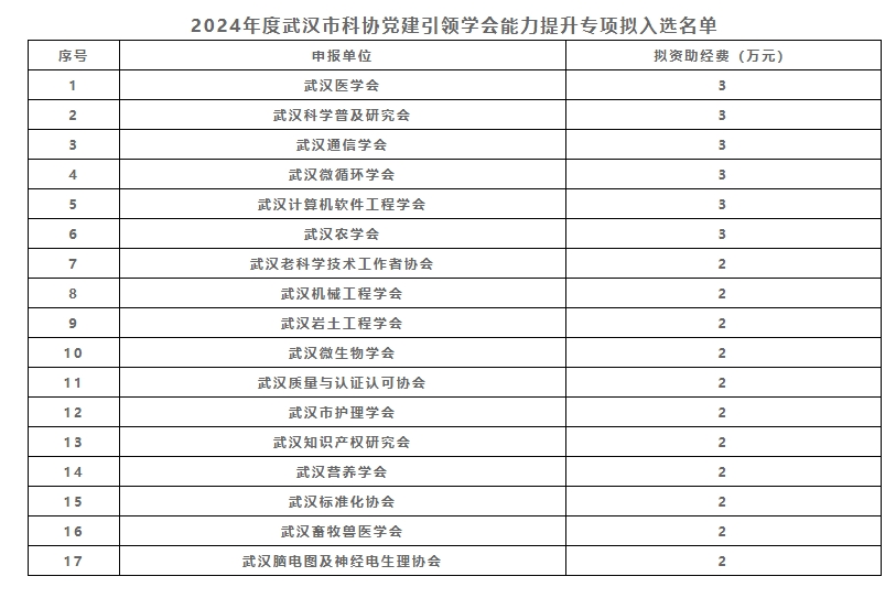2024年6月,根據(jù)武漢市科協(xié)《關(guān)于組織實(shí)施2024年度武漢市科協(xié)黨建引領(lǐng)學(xué)會(huì)能力提升專(zhuān)項(xiàng)的通知》要求,經(jīng)學(xué)會(huì)申報(bào)、形式審查、第三方組織專(zhuān)家評(píng)審等,武漢機(jī)械工程學(xué)會(huì)等17家學(xué)會(huì)入選2024年度武漢市科協(xié)黨建引領(lǐng)學(xué)會(huì)能力提升專(zhuān)項(xiàng)名單。