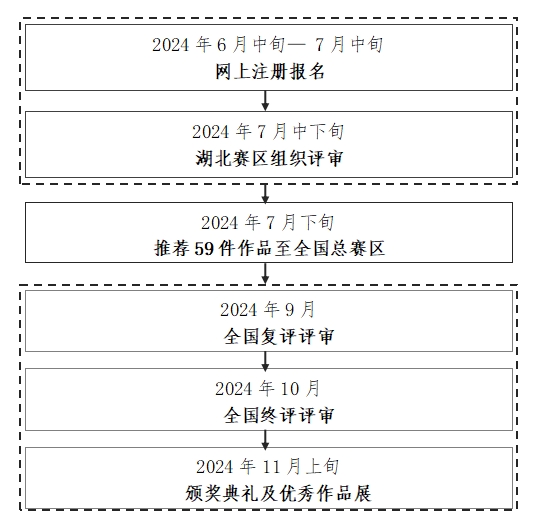 2024年5月至7月,大賽(湖北賽區(qū))組委會(huì)負(fù)責(zé)主賽道作品的組織、宣傳、評(píng)審和推薦工作。省內(nèi)各高校組織本校學(xué)生參賽,湖北賽區(qū)組委會(huì)組織專家對(duì)所有的參賽作品進(jìn)行分類評(píng)審,產(chǎn)生本賽區(qū)的獲獎(jiǎng)作品,最終遴選59件優(yōu)秀作品推薦至全國大賽組委會(huì),參加2024年(第七屆)全國大學(xué)生工業(yè)設(shè)計(jì)大賽復(fù)評(píng)。復(fù)評(píng)(全國賽區(qū)評(píng)審)及終評(píng)(全國賽區(qū)評(píng)審)分別在2024年9月和10月舉行,詳見全國大賽官網(wǎng)。