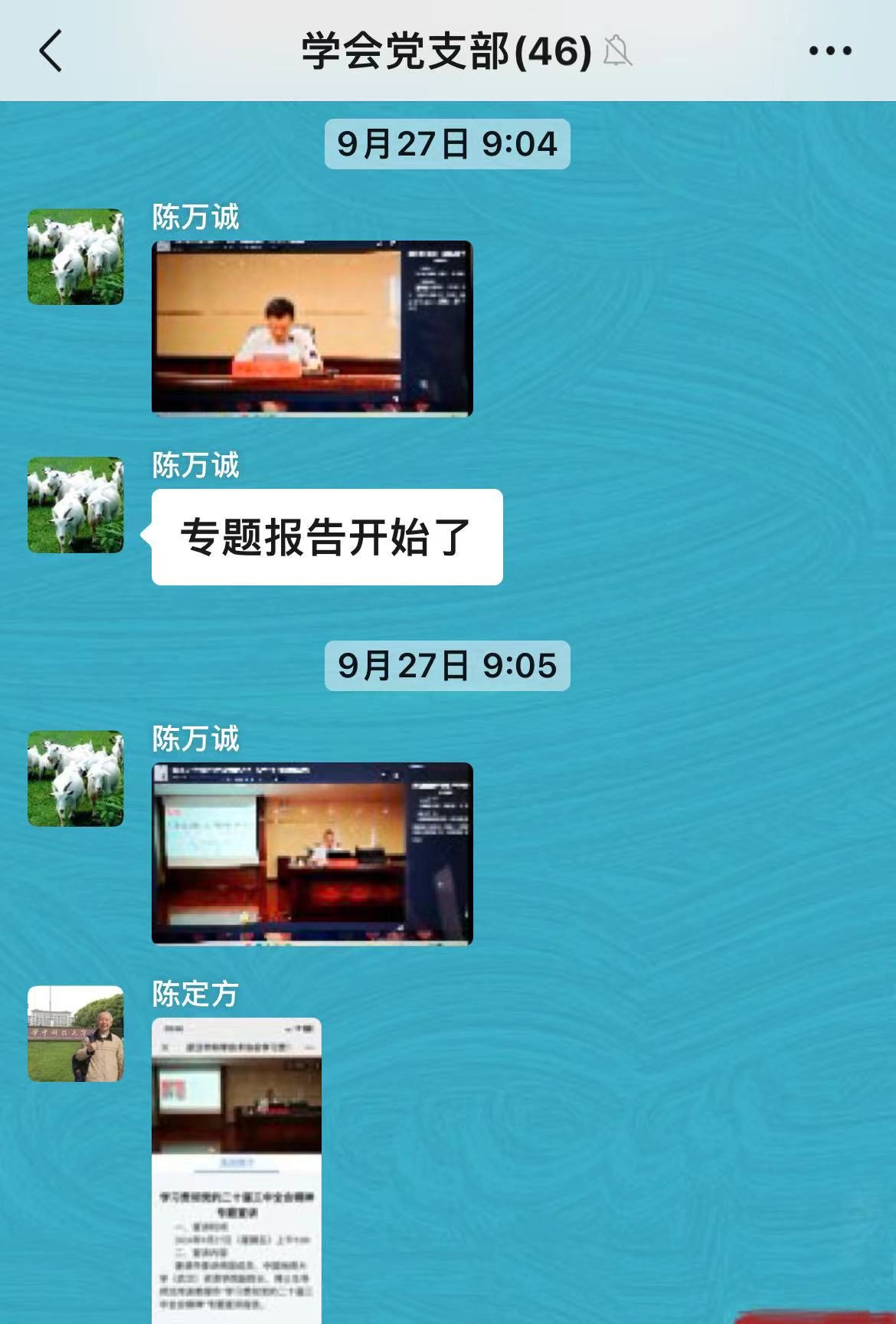 2024年9月27日,武漢市科協(xié)召開學(xué)習(xí)貫徹黨的二十屆三中全會精神專題報告會,學(xué)會黨支部的黨員、專家準(zhǔn)時參加視頻會議,認(rèn)真收看報告會。市委宣講團成員、中國地質(zhì)大學(xué)(武漢)教授、博士生導(dǎo)師沈傳波以《進(jìn)一步全面深化改革 譜寫中國式現(xiàn)代化時代新篇——學(xué)習(xí)貫徹落實黨的二十屆三中全會精神》為題作宣講報告。