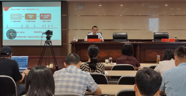 沈傳波教授緊緊圍繞習(xí)近平總書記在黨的二十屆三中全會上的重要講話精神和全會《決定》,從深刻認(rèn)識黨的十二屆三中全會的重大意義、深刻領(lǐng)會和把握進(jìn)一步全面深化改革的主題、深刻領(lǐng)會和把握進(jìn)一步全面深化改革的重大原則、深刻領(lǐng)會和把握進(jìn)一步全面深化改革的重大舉措等多個具體方面,對全會精神進(jìn)行了系統(tǒng)闡述,并結(jié)合習(xí)總書記對科技創(chuàng)新的要求對科技教育人才體制機制一體改革作了深入講解。