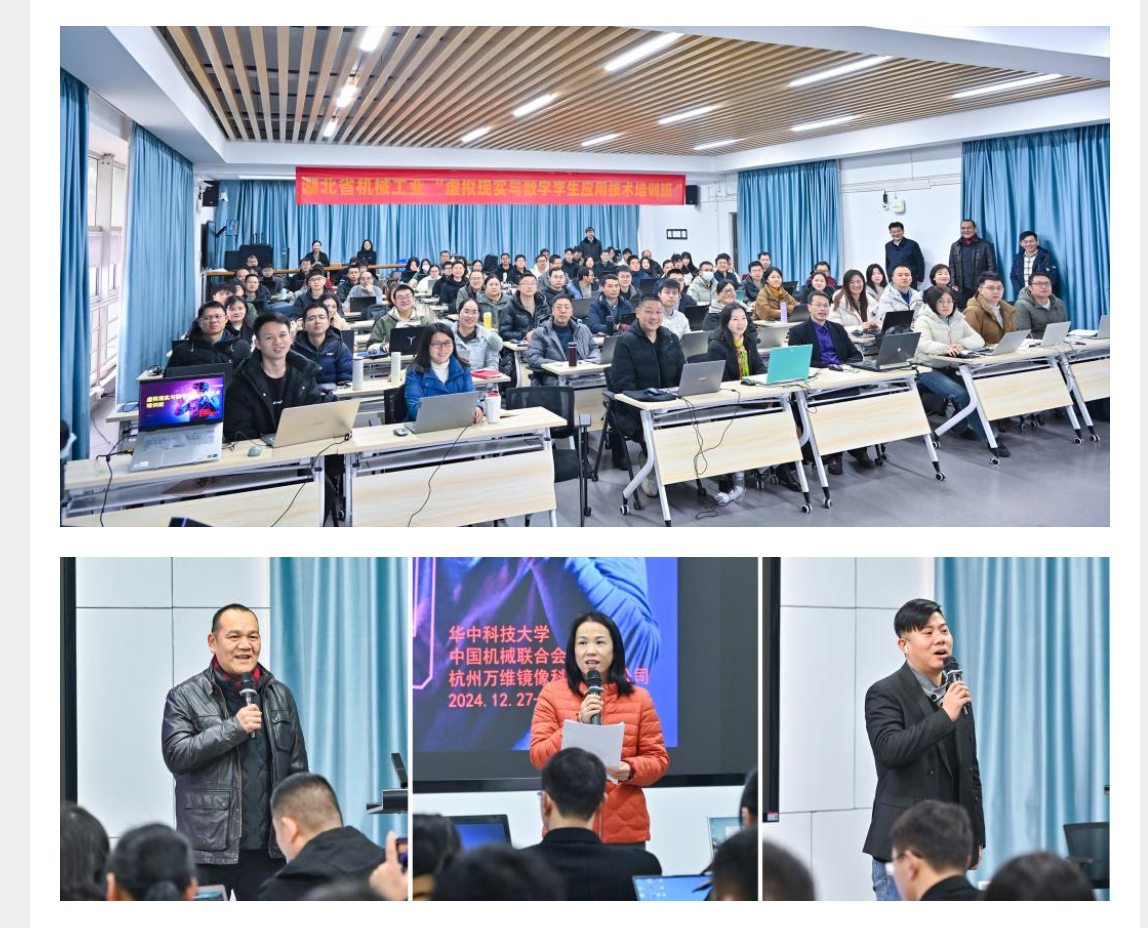 12月27日至29日,由湖北省機(jī)械工程學(xué)會(huì)、湖北省機(jī)械行業(yè)聯(lián)合會(huì)指導(dǎo),湖北省機(jī)械工業(yè)人才評(píng)價(jià)中心、湖北省機(jī)械工業(yè)人才評(píng)價(jià)工作專(zhuān)家委員會(huì)主辦,華科大工程實(shí)踐創(chuàng)新中心、機(jī)械學(xué)院,杭州萬(wàn)維鏡像科技有限公司與武漢法博特機(jī)器人有限公司聯(lián)合承辦的湖北省機(jī)械工業(yè)“虛擬現(xiàn)實(shí)與數(shù)字孿生應(yīng)用技術(shù)”培訓(xùn)班在我校工程實(shí)踐創(chuàng)新中心順利舉辦,此次培訓(xùn)吸引了來(lái)自全省機(jī)械工業(yè)領(lǐng)域的近100名專(zhuān)家參與,取得了豐碩成果,獲得了一致好評(píng),為推動(dòng)湖北省機(jī)械工業(yè)數(shù)字化轉(zhuǎn)型注入了新動(dòng)力。