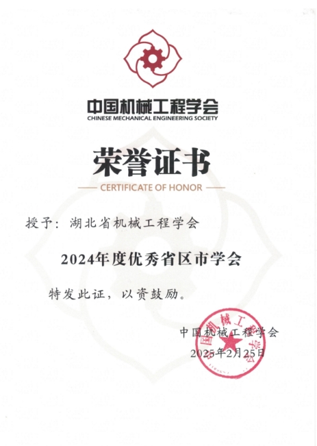湖北省機械工程學會榮獲 “2024年度優(yōu)秀省區(qū)市學會” 和 “2024年度‘云說新科技’科普傳播大賽優(yōu)秀組織單位”兩項榮譽!